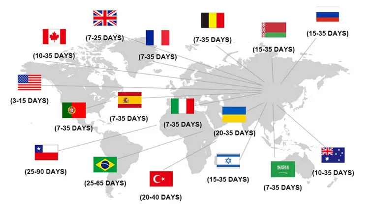 - usually takes 7 to 45 business days worldwide, depending on your destination. Expected delivery time: