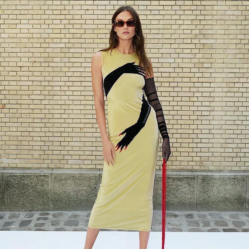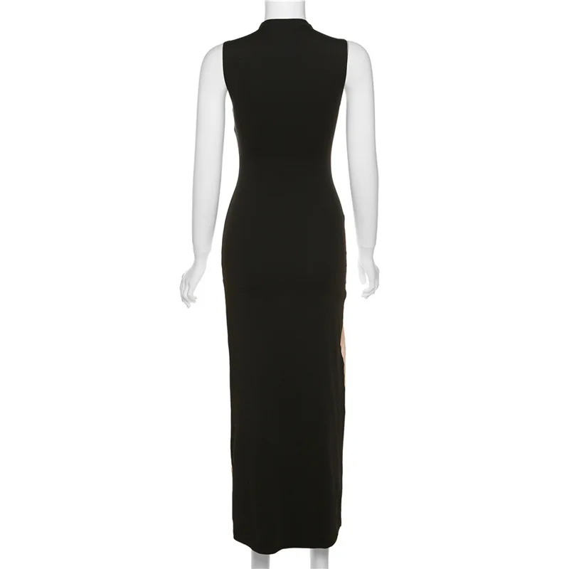 2022 Summer New Women's Fashion Dresses Elegant Round Neck Sleeveless Slim Fit Temperament Contrast Color Buttock Bodycon Dress