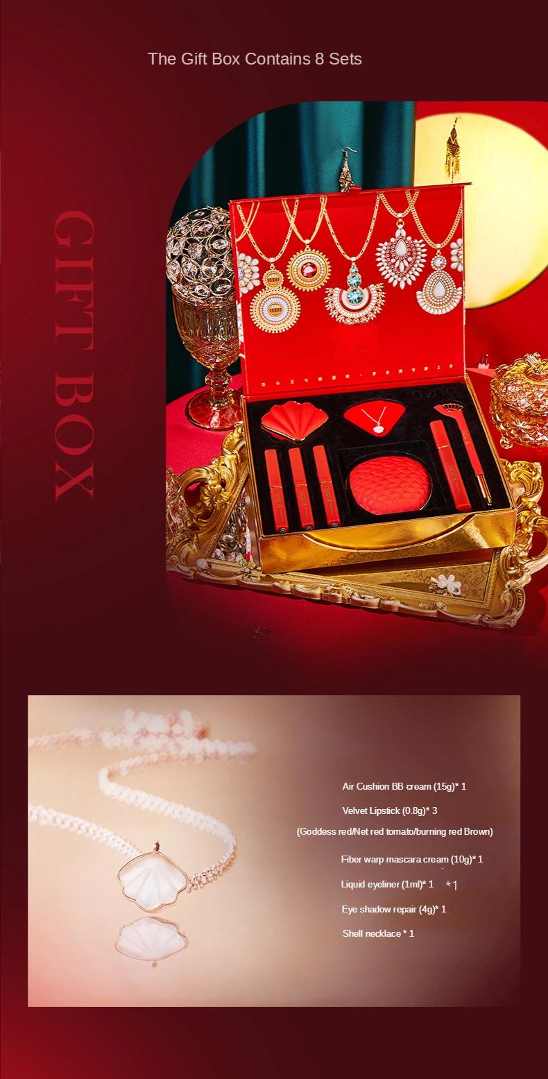 Color Makeup Set 8-piece Cosmetics Set Beauty Makeup Gift Box Valentine's Day Chinese Red Gift Set Kids Makeup Set for Girls