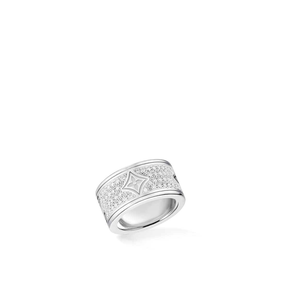 Được chế tác từ vàng trắng và kim cương, mẫu nhẫn cỡ lớn này là một thiết kế nổi bật thuộc Les Gastons Vuitton, một bộ sưu tập mang ý nghĩa tôn vinh cá tính mạnh mẽ và đầy sáng tạo của Gaston-Louis Vuitton, cháu của ngài Louis Vuitton. Thiết kế sang trọng vượt thời gian kết hợp cảm hứng đương đại tạo nên vẻ ngoài ấn tượng, với hoa văn Monogram được khắc tinh xảo và đính 140 viên kim cương lấp lánh. Hơn cả một món trang sức kỳ công, tác phẩm còn thể hiện di sản và kỹ nghệ chế tác bậc thầy của Maison.