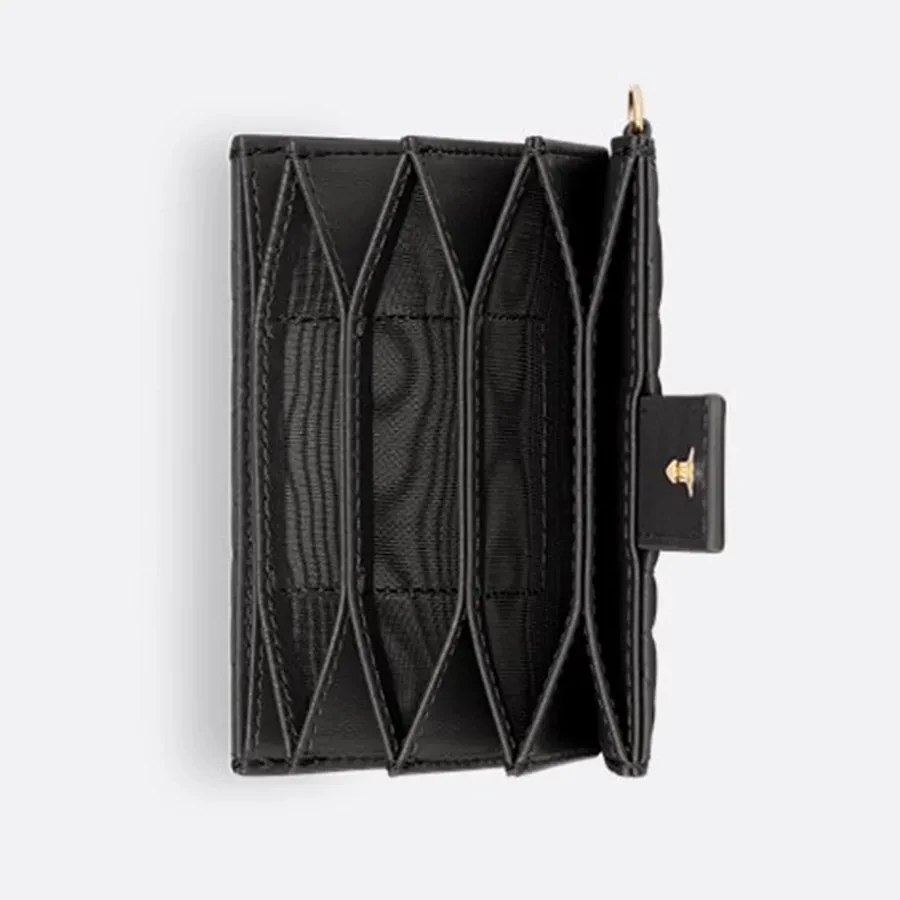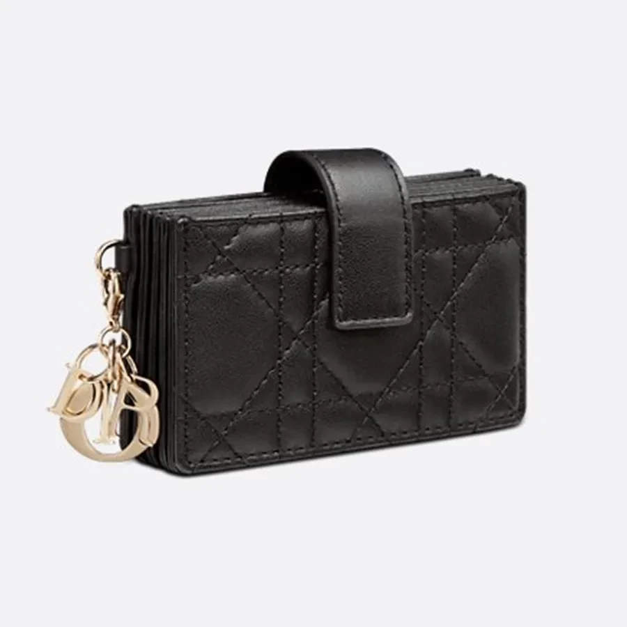 Với gam màu đen thanh lịch, chiếc ví này tạo nên sự nổi bật nhưng không kém phần thanh lịch. Thiết kế độc đáo cùng charm logo nổi bật của Dior chính là điểm nhấn thu hút ánh nhìn từ người đối diện. Chiếc ví không chỉ đơn giản là một vật dụng đựng thẻ, mà còn là một món trang sức thời trang hoàn hảo cho bộ trang phục của bạn.